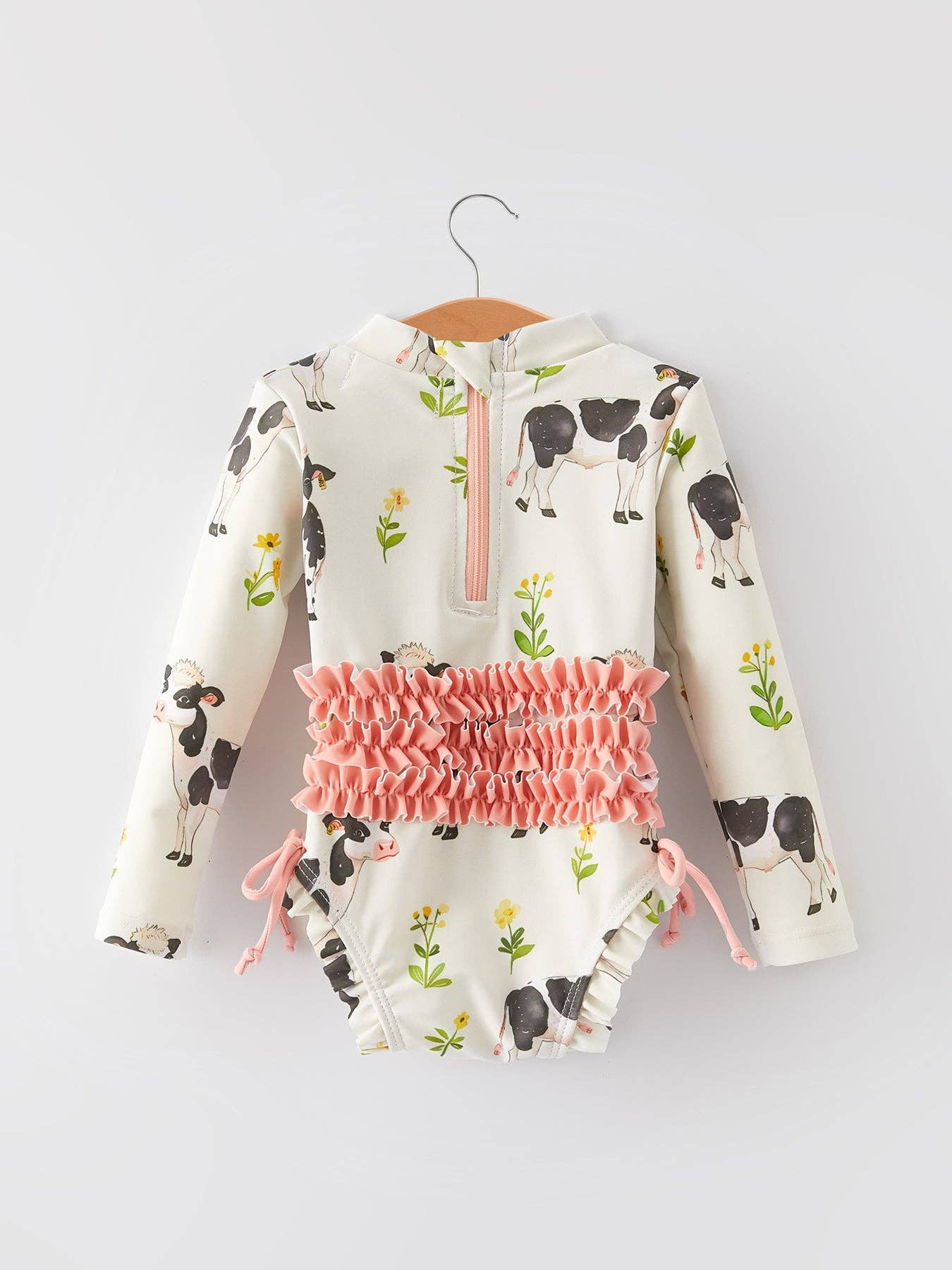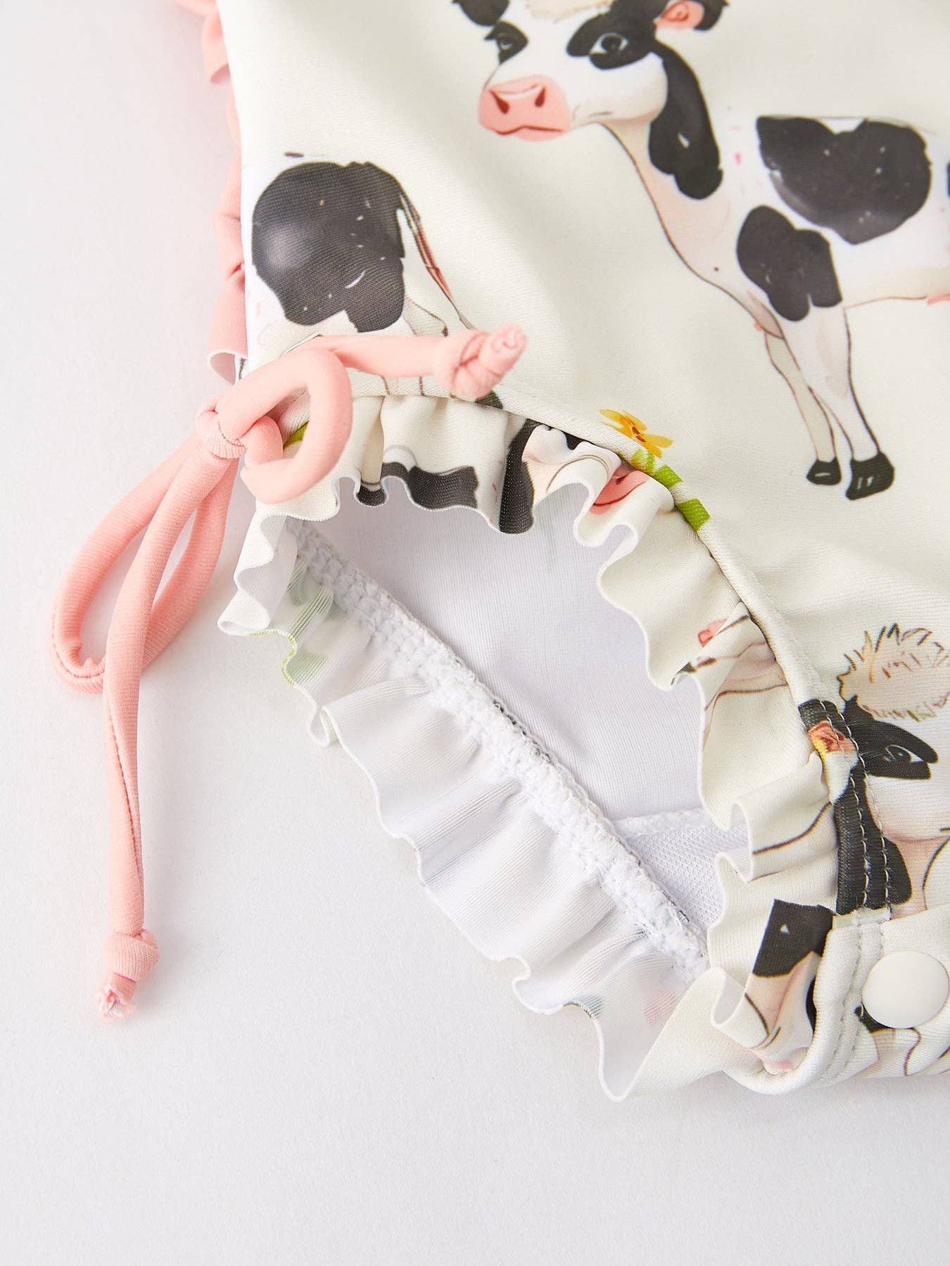 Empower your little girl's day at the beach with our "Cow" Floral Girls' Swimsuit. Made from high-quality material, this swimsuit is both comfortable and durable. The adorable cow print with vibrant floral accents will make her stand out while providing protection from the sun. Elevate her swimwear with style and functionality!
