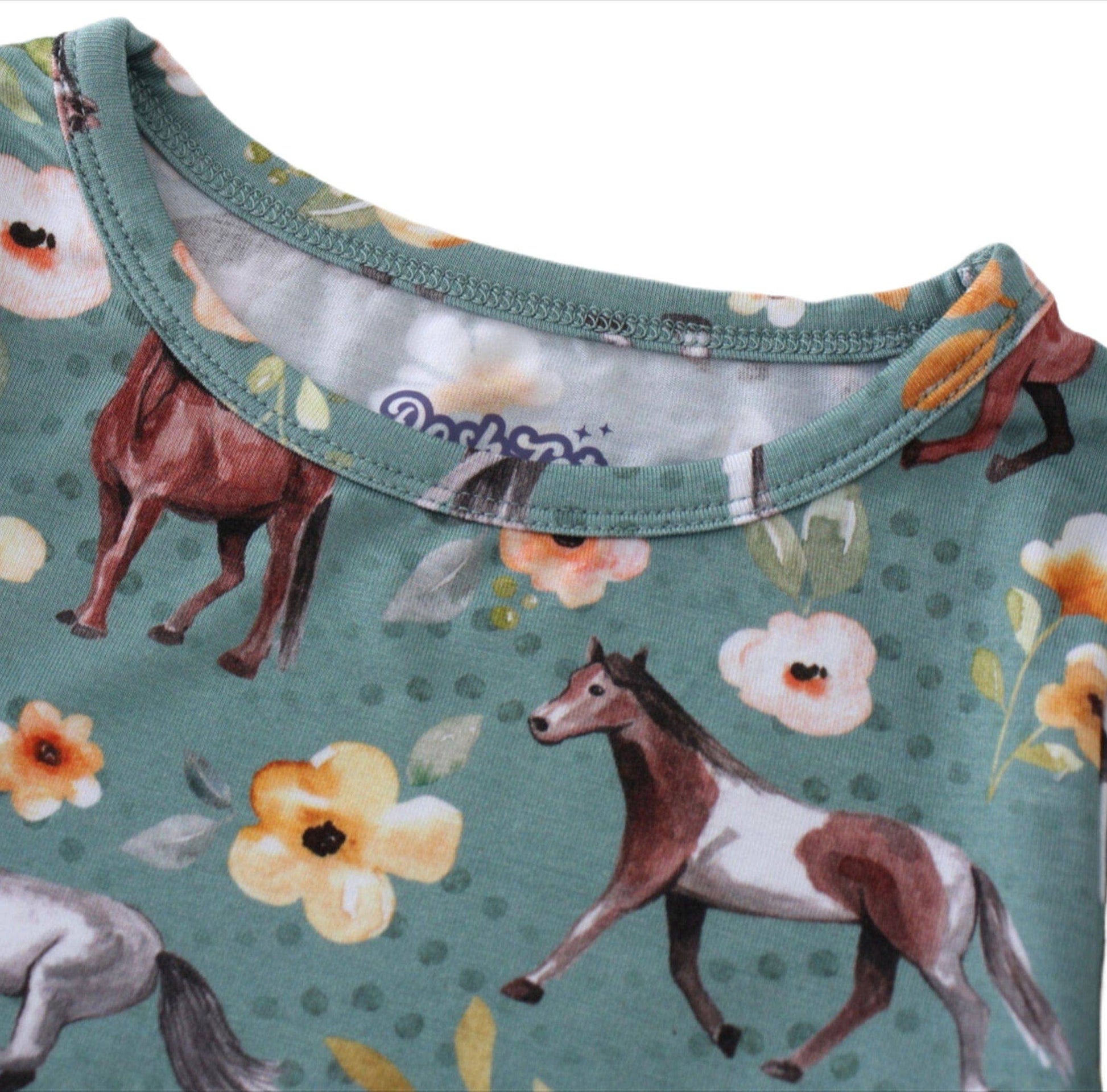 PoshTOT Forest Green Horse 2 Piece PJ Set