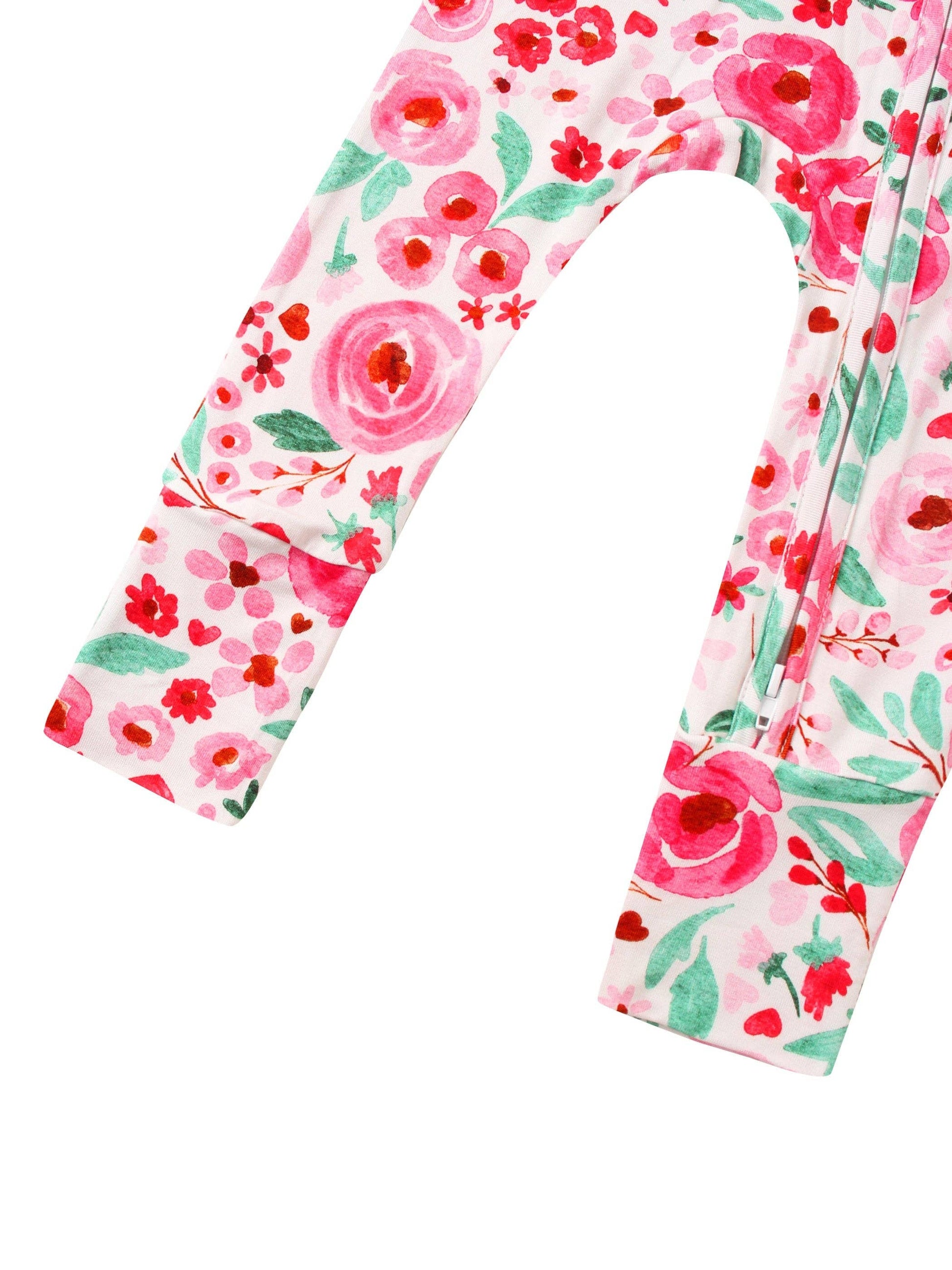 PoshTOT Watercolor Flowers Bamboo Baby Convertible Zippy Romper